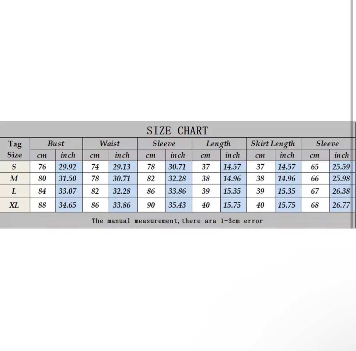 Manual measurement — please allow 1–3 cm difference.